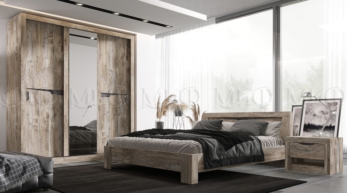 Спальный Гарнитур Ройс /Дуб Юкон/Бетон Темный №2